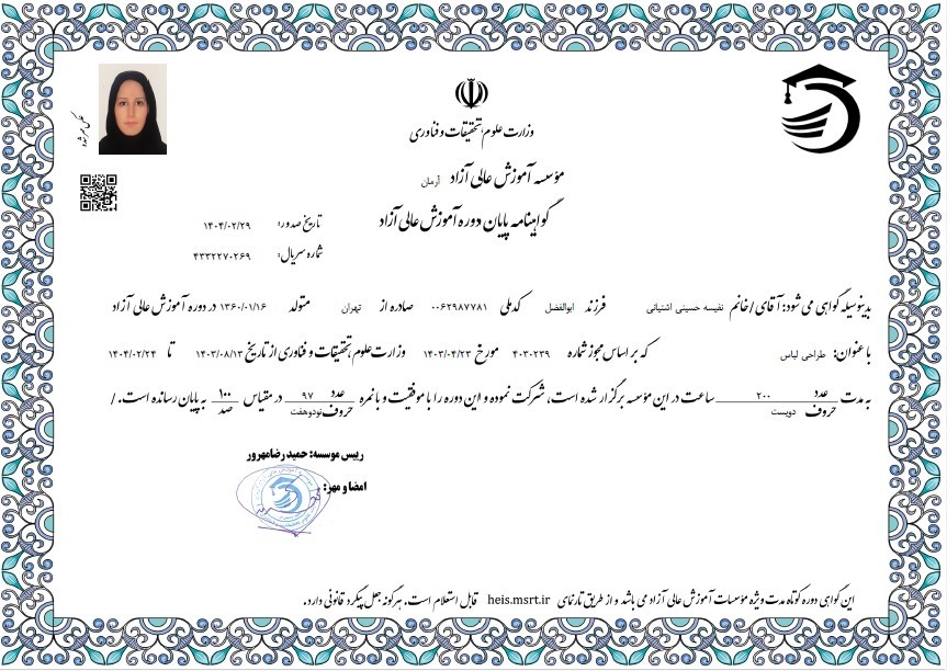 خاطرنشان می شود فارغ التحصیلان می توانند جهت استعلام و تائیدیه با وارد کردن بارکد درج شده در روی گواهینامه در سایت https://heis.msrt.ir نسبت به اصالت گواهینامه خود اطمینان حاصل نمایند .