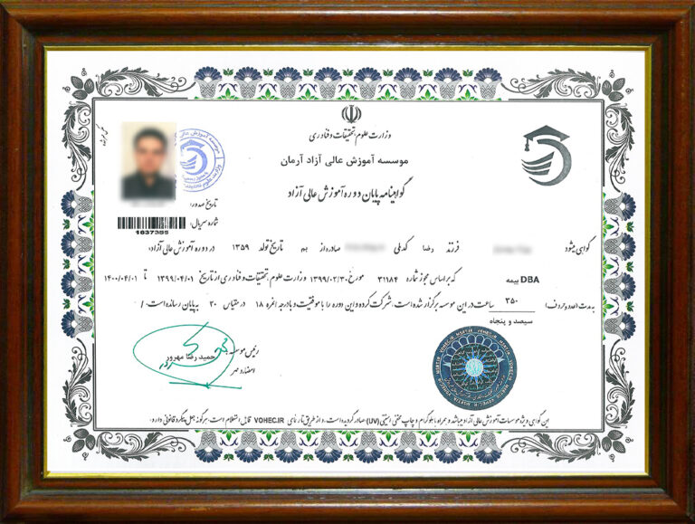 خاطرنشان می شود مدرک پایان دوره DBA مورد تایید وزارت علوم تحقیقات و فناوری است و امکان تایید و ترجمه قوه قضائیه و وزارت امور خارجه جمهوری اسلامی ایران ویژه متقاضیان مهاجرت می باشد